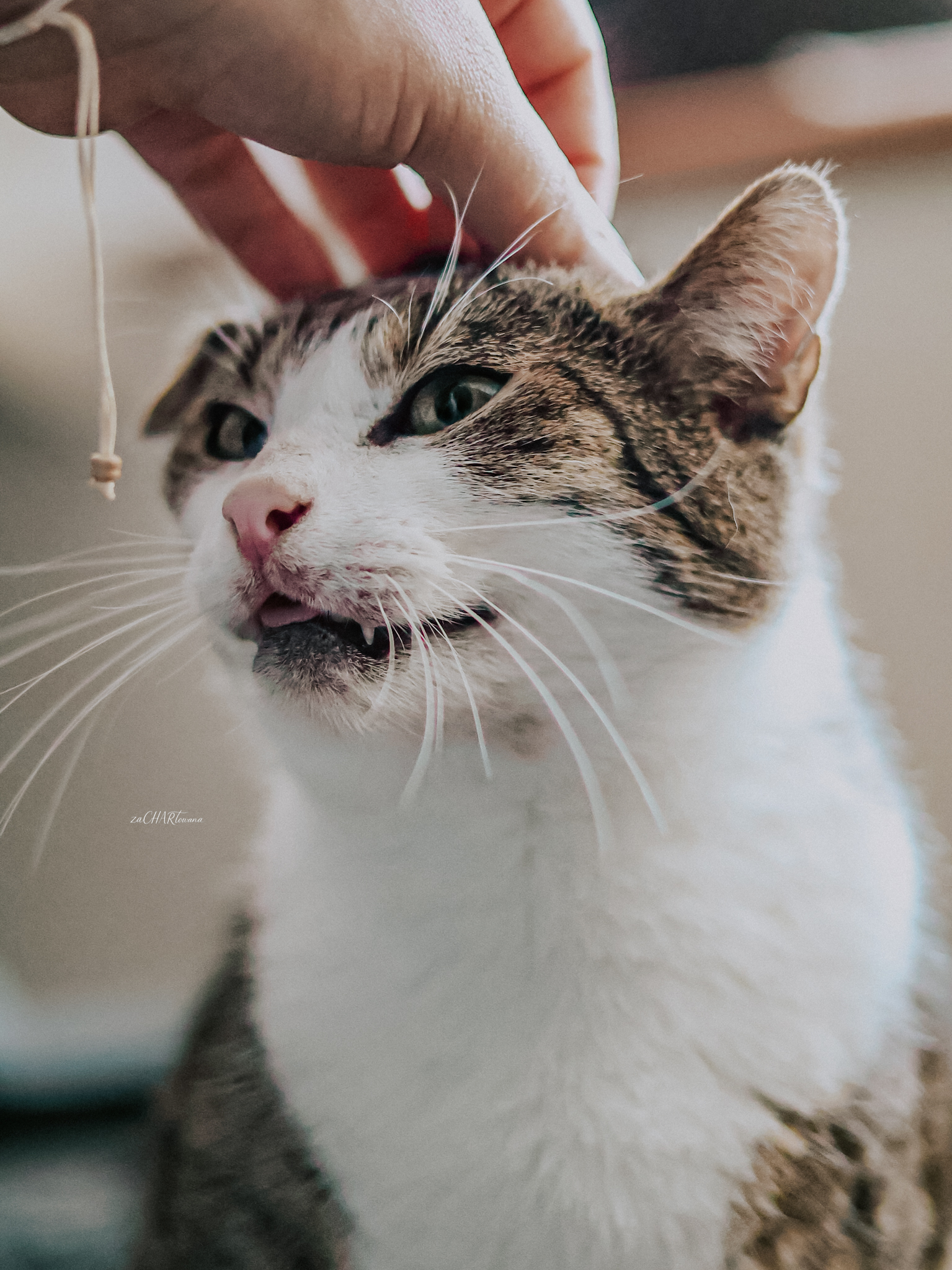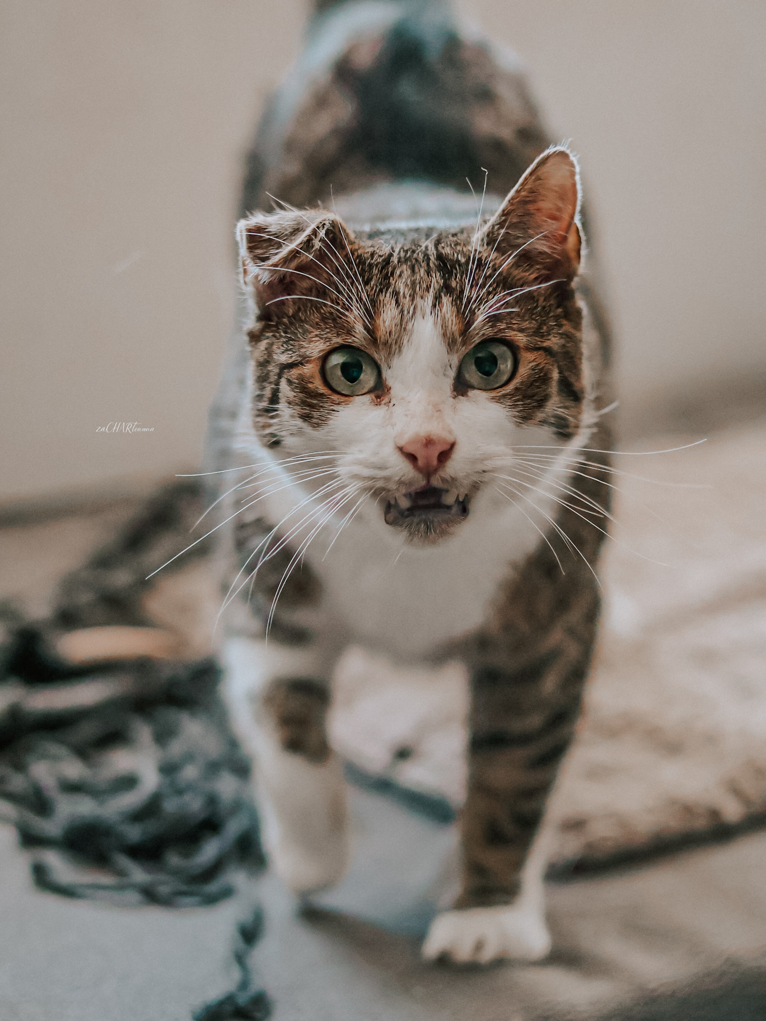 Kefir idealnie zachowuje czystość. Drapie jedynie swój drapaczek. Uwielbia gonić za wędką i oglądać widoki za oknem.